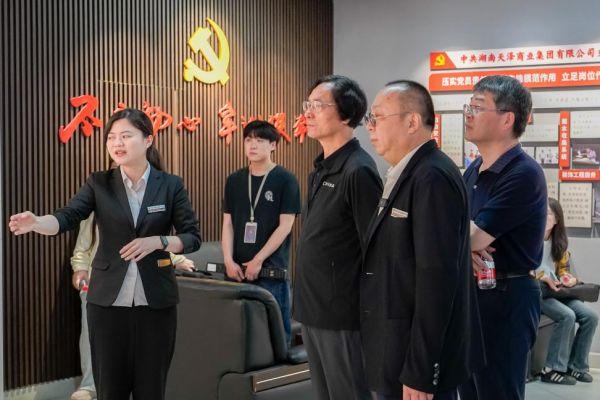 为深入学习宣传贯彻习近平总书记关于数字经济的重要论述,4月11日至12日,人民日报社人民论坛调研组赴湖南天泽商业集团有限公司(以下简称“天泽集团”)开展了专题调研。参与此次调研的领导专家有:人民论坛专题调研组首席研究员、调研组组长陶建群,中共中央党校(国家行政学院)经济学部副主任许正中,中央组织部党建研究所原副巡视员刘剑辉,国务院发展研究中心宏观经济研究部二级巡视员张俊伟,商务部国际贸易经济合作研究院副研究员戴明峰,江苏大学管理学院副院长、教授、博士生导师肖璐等。天泽集团总经理杨力、副总经理杨毅、冯军英、刘媛等相关企业负责同志陪同调研。