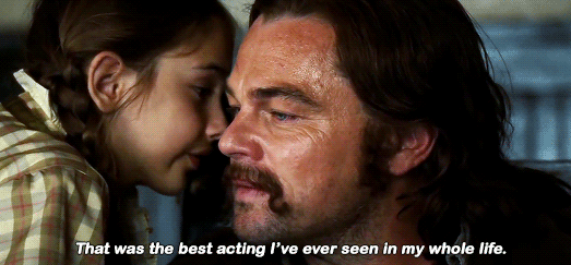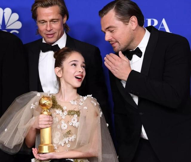 而颁奖现场的合影照,却让人酸出了天际,原因是小李子和皮特的奖杯皆有一位10岁的小女孩拿着,小李子还一脸宠溺看着她,真是羡煞旁人了。