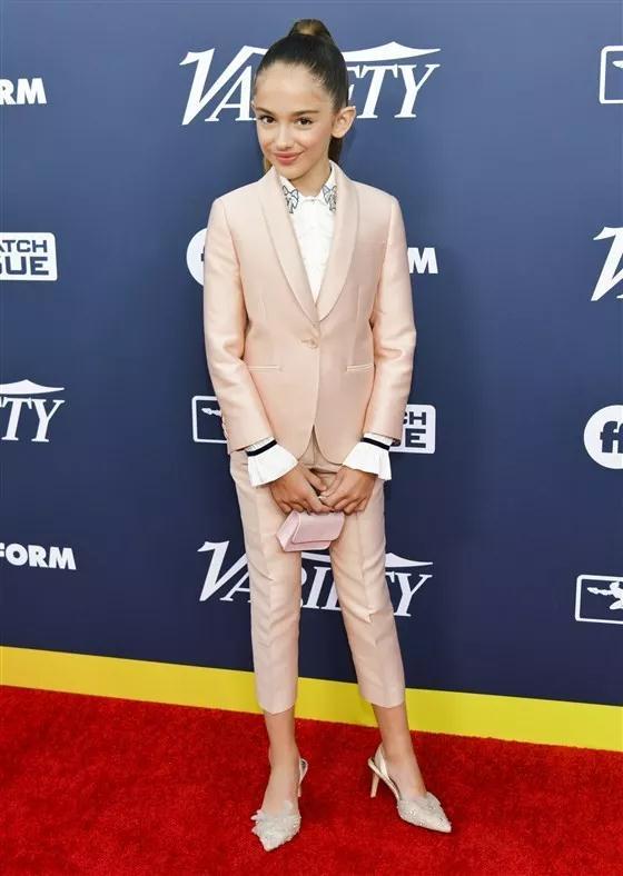 年仅10岁的她就有如此待遇,但真的别看姑娘年纪小,在金球奖的红毯上走得轻车熟路,引得众多媒体镁光灯不停闪烁,Saly全场,气势压过其她女演员。