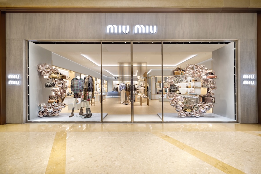 2025 年 12 月 19 日 -- Miu Miu 澳门四季名店专门店以全新形象示人,为庆祝新店开幕,Miu Miu 举办了庆祝酒会,并邀请品牌大使刘柏辛 (Lexie Liu) 及时尚名人欧阳娣娣,身穿 2025 年假日系列出席活动。