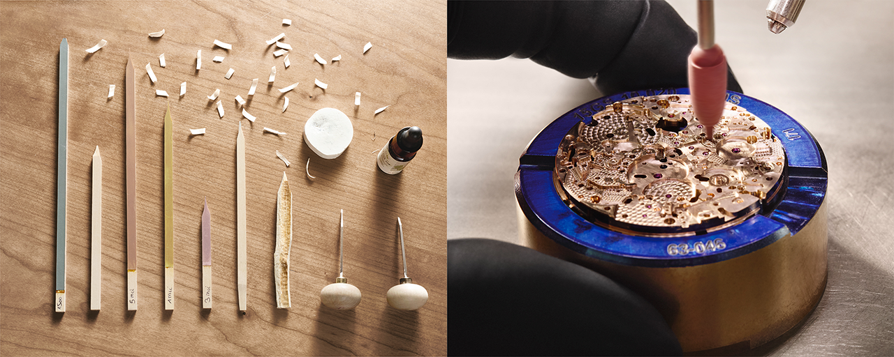 诞生于汝拉山谷大复杂工坊,由法兰西手工艺最高奖(MOF)得主领衔的金雕团队手工打造,新表王大音乐家15GSQ顶奢腕表彰显出宝珀在超凡工艺上的无可匹敌实力——宝珀自主研发271种专属工具;一枚机芯的打磨工序便需要耗费465小时;一块主夹板上则有七种尺寸的3484个珍珠纹,制表师每打磨5个纹就要更换磨头;内角打磨是行业公认最难的打磨方式,宝珀挑战不可能,以148个内角的绝对数量傲视同侪;同时用独特的30度倒角颠覆传统的45度技法,赋予了金属堪比钻石般的夺目光彩。每枚机芯均通过两轮组装,耗时一年,只为“看不见的完美”——这不仅是技术壮举,更是品牌对永恒工艺的执着。
