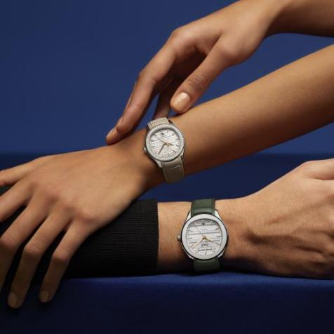 2024年,为献礼品牌150周年华诞,PIAGET伯爵重新诠释伊夫·伯爵(Yves Piaget)先生所珍视的情侣对表制表传统,以多元造型演绎当代设计,成就男女皆宜的佩戴佳作。两年后,PIAGET伯爵延续这一经典脉络,推出魅力非凡的PIAGET伯爵Polo系列全新情侣对表,凭借Polo 79腕表标志性的圆模雕刻装饰,为日常佩戴增添了精致格调。两款新作融合了PIAGET伯爵Polo系列开山之作备受推崇的圆模雕刻装饰,亦沿袭了经典PIAGET伯爵Polo Date腕表所独有的优雅运动美学。银色表盘设计别具新意,不仅是对PIAGET伯爵隽永魅力与优雅格调的致敬,更将两款时计臻作的鲜明风格衬托得淋漓尽致。其中,42毫米表款搭配卡其绿可替换式橡胶表带,而36毫米表款则配以米色可替换式橡胶表带,表圈镶嵌96颗明亮式切割钻石。两者巧妙呼应了1979年问世的PIAGET伯爵Polo系列腕表的设计元素,既彰显当代审美,亦为PIAGET伯爵作品的独特魅力写下了生动注脚。