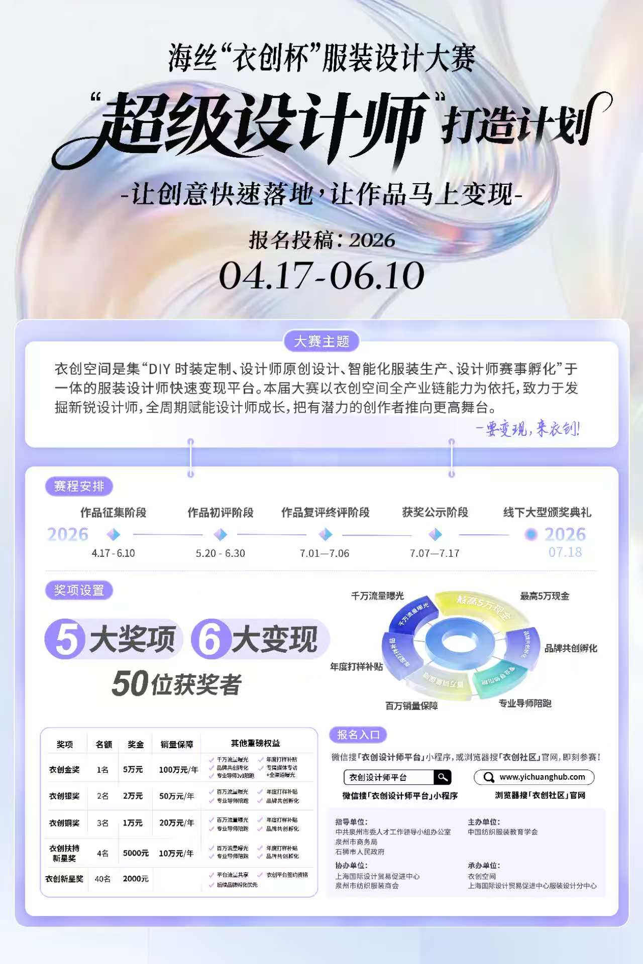 海丝“衣创杯”服装设计大赛作为核心重磅活动全球首发,赛事由中共泉州市委人才工作领导小组办公室、泉州市商务局、石狮市人民政府指导,衣创空间为第一承办单位,锚定城市产业升级战略,扎根泉州千亿纺织鞋服全产业链,依托衣创空间顶级柔性供应链实力,正式开启全球设计师商业化孵化新征程!